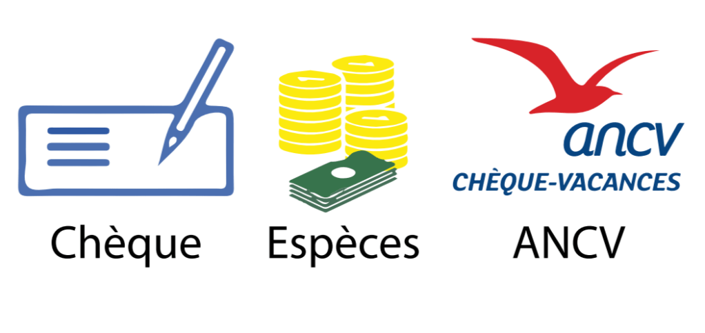 Le paiement se fait par espèces, chèques, et chèques vacances uniquements